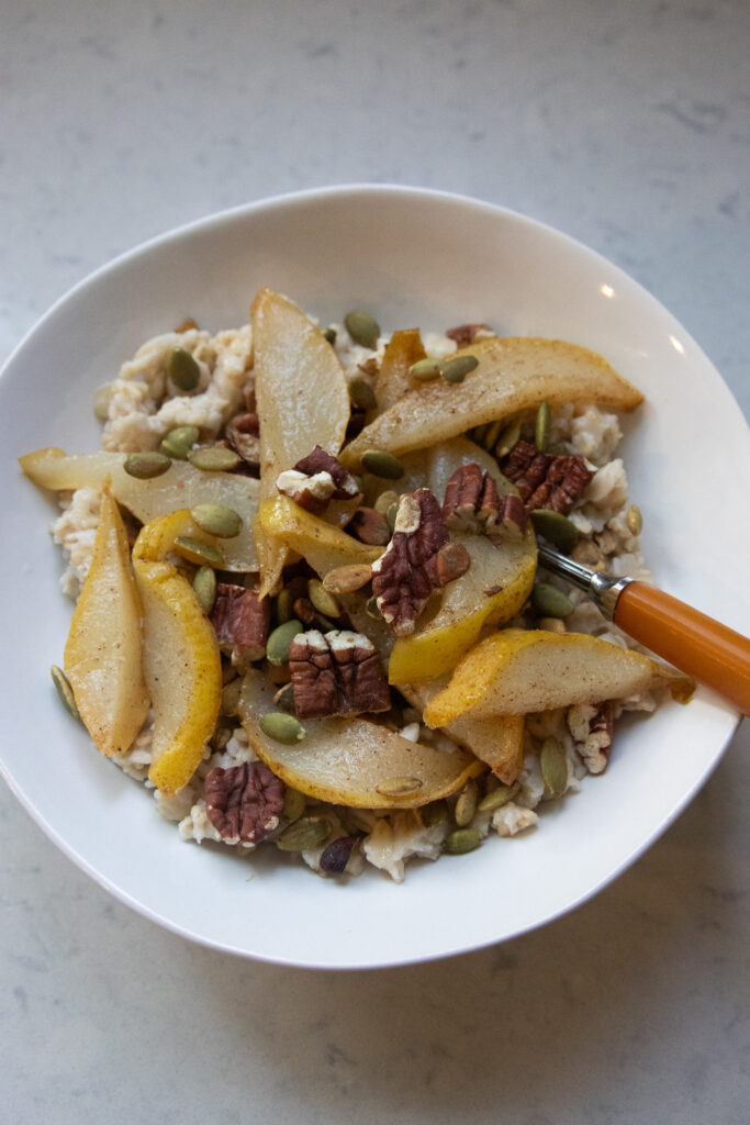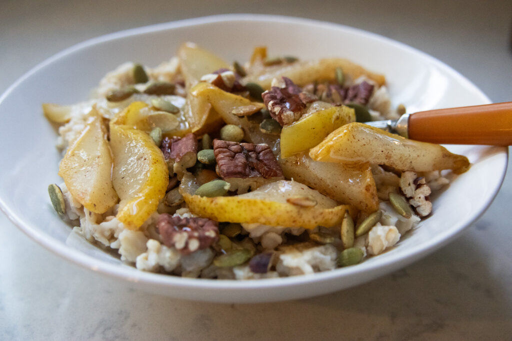 Oatmeal with Toasted Nuts & Roasted Spiced Pears